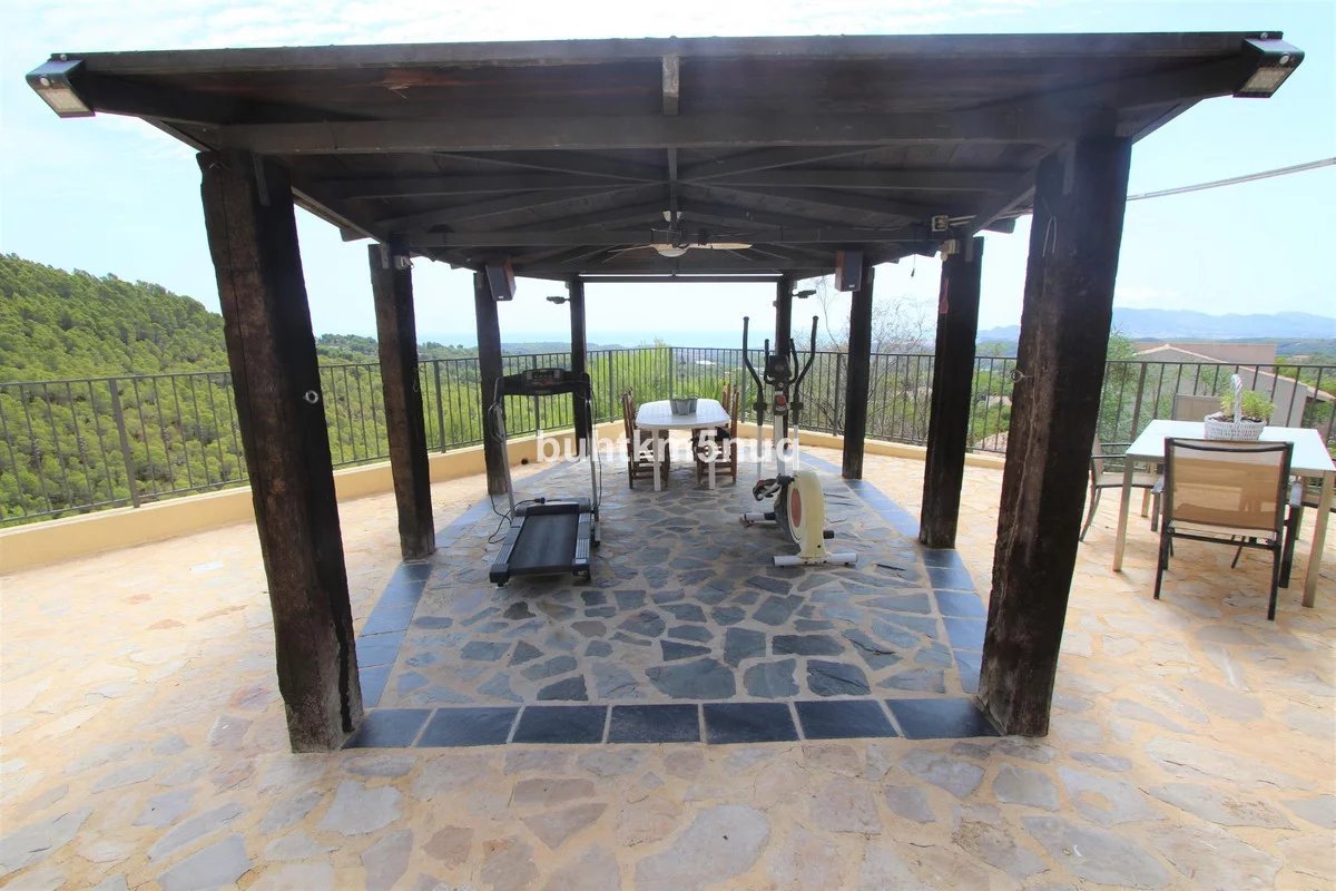 Villa with guest house, private pool, covered outdoor kitchen, several terraces, large garage and plenty of parking space. The main house has a spacious living / dining room with open kitchen, a laundry / storage room, 2 bedrooms and 1 bathroom. There is heating with gas radiators, fireplace, double security glass, shutters and mosquito windows. The guest house has 2 bedrooms and 1 bathroom. The large covered equipped outdoor kitchen has a BBQ, a gas stove and a pizza oven. From all the terraces you have a view of Altea, the Mediterranean Sea and the mountains.