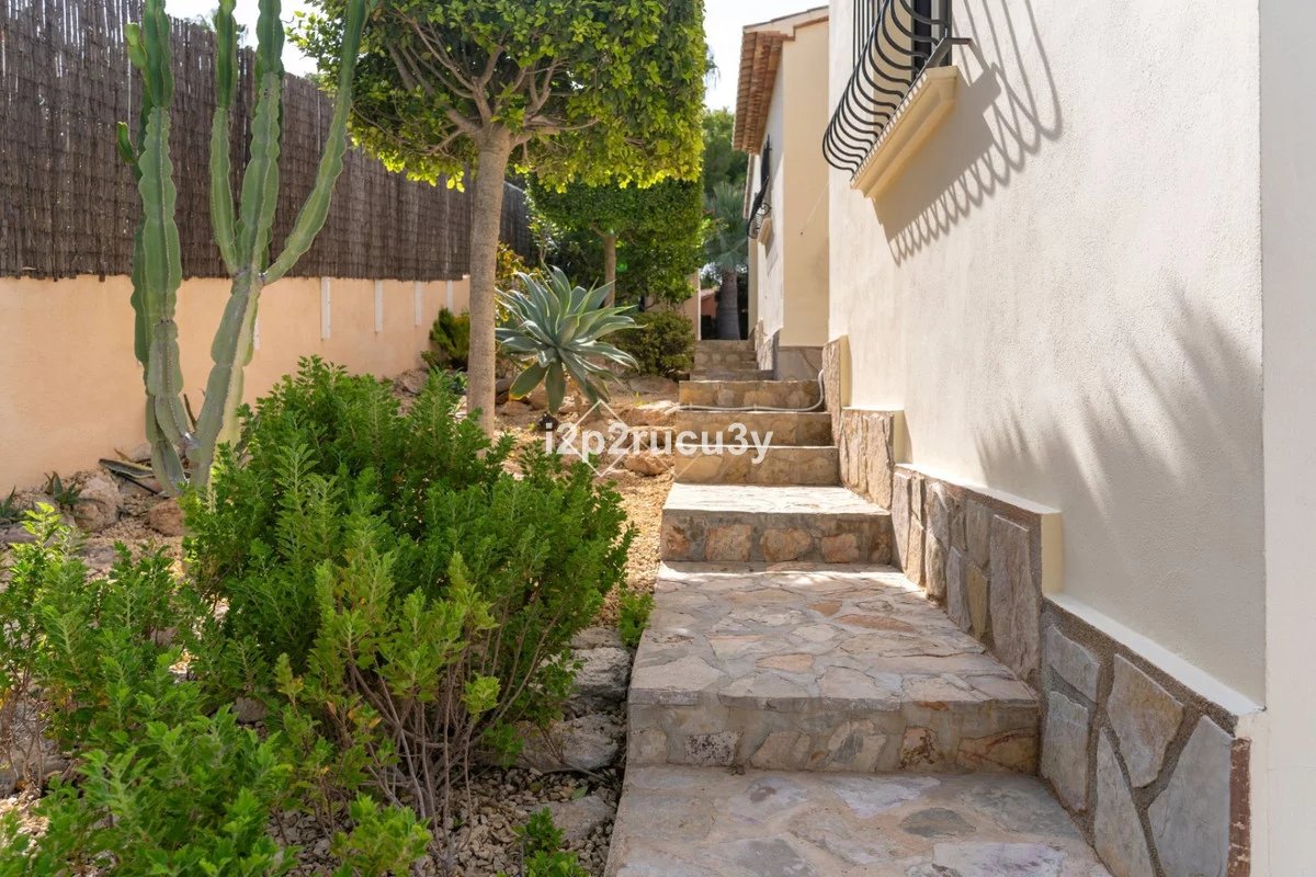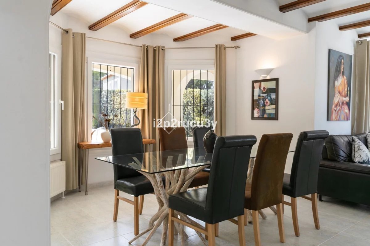 Are you looking for your dream home in one of the most exclusive and desirable neighborhoods of the Costa Blanca? This beautifully renovated villa in Cap Blanc, Moraira, offers you a unique opportunity to live in luxury, comfort, and style, with everything you need just a short walk away. Boasting a desirable south orientation and being fully private, this property is situated in a prime location within walking distance of supermarkets, cozy bars, fine restaurants, and the stunning Cap Blanc / Punto Estrella Bay.Layout and Living SpaceThe villa is entirely on one level, making it both practical and comfortable. As you enter, you are welcomed into a spacious, light-filled living room that seamlessly flows into the dining area and the modern open-plan kitchen. This kitchen features a stylish island, high-quality built-in appliances, and offers plenty of space for cooking and dining with family and friends. Thanks to the open layout, you will enjoy a harmonious connection between the living areas, creating a spacious feel while allowing natural light to flow throughout the home.The living room provides direct access to the large covered terrace. Here, you can relax all year round, whether in the shade or the sun, while enjoying views of the sparkling pool and the extensive surrounding terraces. This outdoor space is perfect for taking advantage of the Mediterranean climate, whether you're sunbathing, dining al fresco, or simply relaxing in your private, peaceful garden with full privacy. The beautifully landscaped and fully enclosed garden offers plenty of privacy, making it a tranquil oasis of peace and beauty.Bedrooms and BathroomsThe villa boasts three spacious bedrooms. Two of the bedrooms share a modern bathroom with a walk-in shower. The master bedroom, however, offers an extra level of luxury with a private ensuite bathroom, complete with a spacious shower and a lovely bathtub, perfect for unwinding after a long day.Additional Features and FinishesIn addition to the generous living and sleeping areas, practical storage options have also been considered. The villa includes a large garage, ideal for securely parking your car or as extra storage space. There is also a large storage room suitable for various purposes, such as storing garden equipment, sports gear, or even creating a hobby room.This villa has been carefully renovated and finished with high-quality materials, providing a refined and modern look. You'll enjoy the comfort of gas central heating during cooler months and air conditioning during the warm summer days, ensuring year-round living in optimal conditions.LocationCap Blanc is known as one of Moraira's most exclusive residential areas, cherished for its tranquility, proximity to all amenities, and beautiful coastline. Moraira itself is a charming coastal town offering plenty to enjoy, from stunning beaches and coves to a lively town center full of boutiques, restaurants, and bars. Whether you're looking for a permanent residence or a vacation home, this south-facing, fully private villa has everything you could wish for.Don't Miss This Opportunity!Are you ready to live in a beautifully renovated villa in a prime location in Moraira? This property offers everything you are looking for: space, luxury, privacy, and a fantastic location near the beach and all amenities. Don't hesitate, contact us today for more information or to arrange a viewing. Your dream home is waiting for you!Villa Features:Fully renovated with high-quality materialsSouth orientation and fully private3 spacious bedrooms and 2 modern bathroomsModern open-plan kitchen with islandLarge living room with direct access to the covered terracePrivate pool with sunny terrace and gardenGarage and large storage roomGas central heating and air conditioningWalking distance to supermarkets, bars, restaurants, and the Moraira baySeize this opportunity and make this villa your new home!