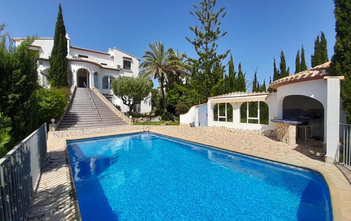 Lower Floor: This level features a 40 m² independent suite with a bedroom, bathroom, and integrated kitchen, perfect for guests or as a workspace. From here, there is direct access to the pool area, complete with a second barbecue area and another summer kitchen for a complete outdoor experience.Surrounded by a charming Mediterranean garden filled with flowers and fruit trees, this villa includes central gas heating, a spacious enclosed garage with windows, and a parking area for three cars, as well as an additional pergola with space for two more vehicles.Located in a quiet and exclusive area of Montepego, near Denia, this property is a unique opportunity for those seeking a peaceful retreat and an exceptional investment.Don't miss the chance to visit this gem in Montepego!