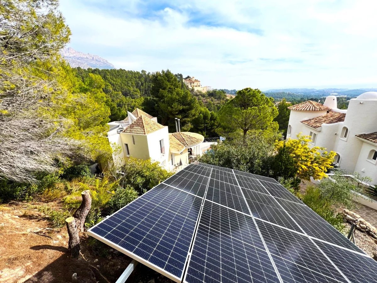 Deze villa is gelegen in een zeer rustige omgeving op slechts een paar minuten rijden van Altea la Vieja en een paar meer van Altea. Dicht bij de eerste levensbehoeften en de Don Cayo golfclub. Met een prachtig open uitzicht op de baai van Altea op de meer dan 1.000 meter perceel, het biedt grote tuinen, barbecue, prive zwembad, fantastische terrassen en 16 zonnepanelen installaties die het hele pand voorzien.Verdeeld over 2 verdiepingen met ruime kamers en veel natuurlijk licht dankzij de oriëntatie op zee. Op de hoofdverdieping heeft het een grote dubbele hoogte woon-eetkamer met open haard en toegang tot de terrassen, een onafhankelijke volledig ingerichte keuken met wasruimte en toegang tot de buitenkant van het pand, een grote slaapkamer met eigen badkamer en een gastentoilet.Op de 1e verdieping heeft het 2 tweepersoonsslaapkamers, een kantoorruimte en 1 complete badkamer. Daarnaast is er een comfortabel terras met uitzicht op zee.De woning heeft een mooie grote oprit met ruimte voor meer dan 4 auto's. De villa is voorzien van vloerverwarming, airconditioning in alle kamers, mooie tuin, privézwembad en een fantastisch terras.Het ligt 4 km van de stad, 7,5 km van het strand, 5 km van de snelweg en 73 km van de luchthaven van Alicante