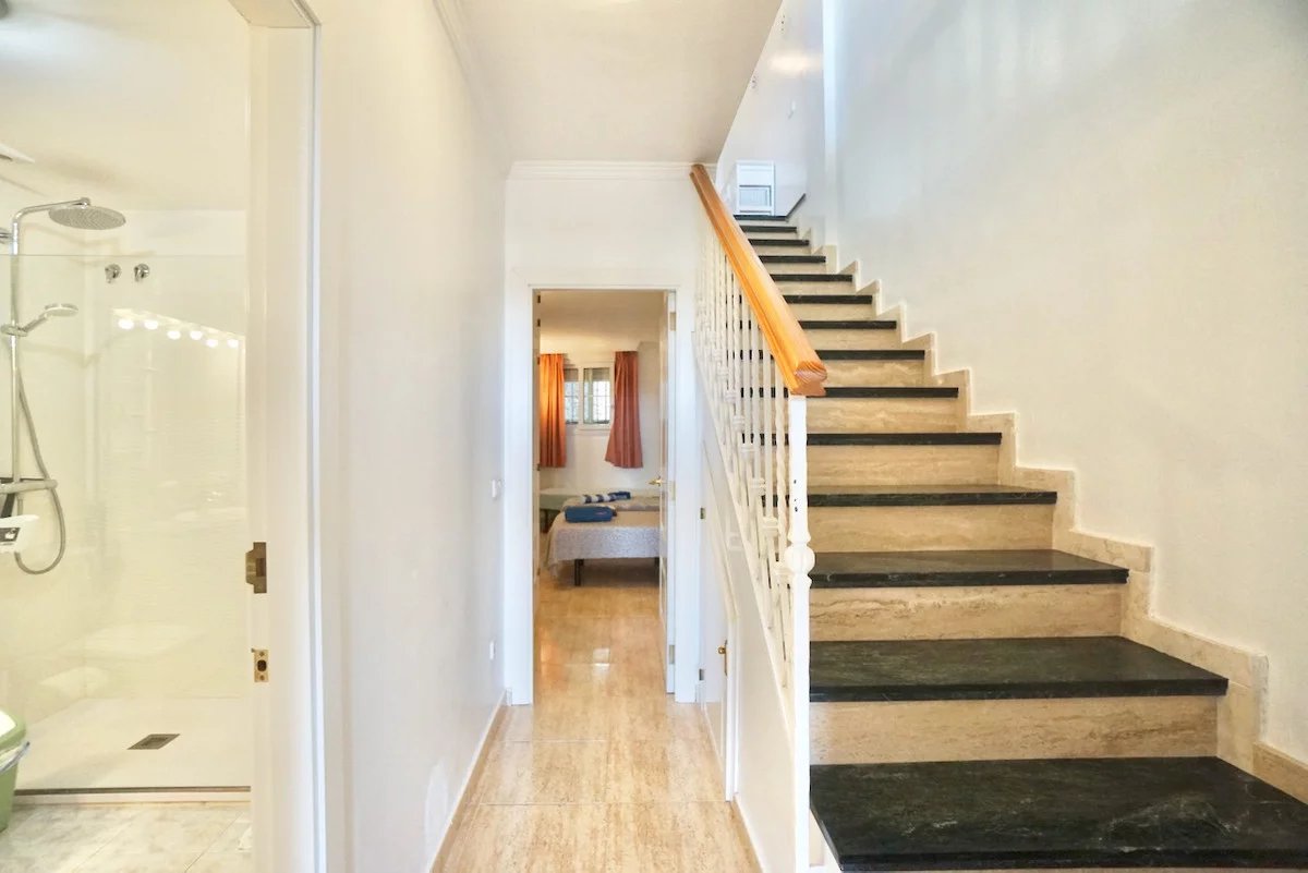 De bovenverdieping heeft een hal met gastentoilet, een open woon-/eetkamer met uitzicht op zee en toegang tot een ruim terras met uitzicht op het zwembad en het strand, een aparte keuken en een bijkeuken. Een interne trap leidt naar de begane grond die bestaat uit een tweepersoons slaapkamer met toegang tot een eigen terras en gemeenschappelijke tuinen, een badkamer met douche en een tweede tweepersoons slaapkamer met inbouwkasten en berging.Beveiligde ondergrondse parkeergarage met twee eigen parkeerplaatsen, berging, trap en lift naar de flat.De flat is voorzien van warme en koude airconditioning, PVC buitenschrijnwerk met dubbele beglazing en rolluiken, video-intercom en high speed internet.Residencial Platgetes is een omheind en beveiligd complex met gemeenschappelijke tuin en zwembad (15 x 6,5m) en een ondergrondse garage.